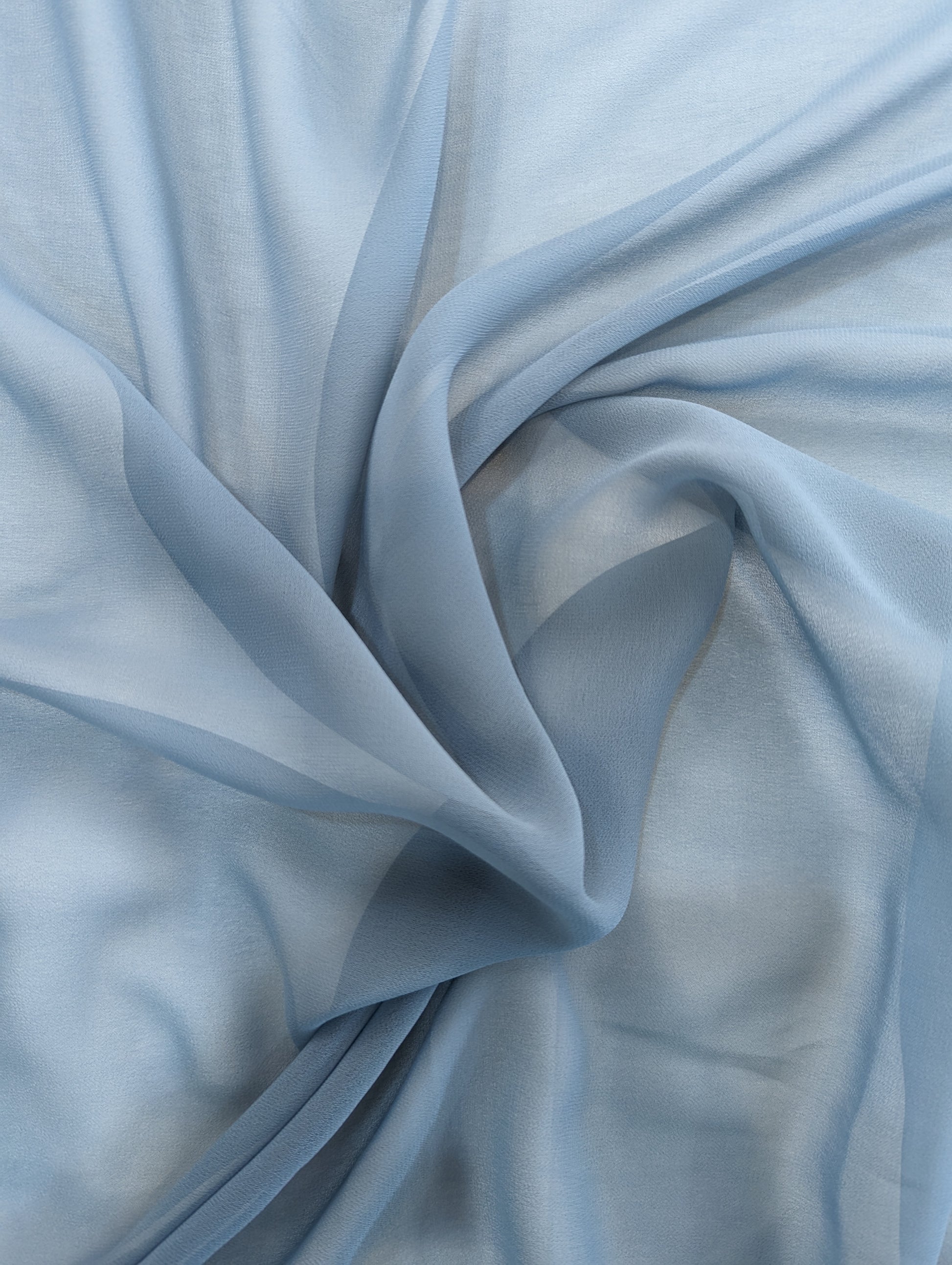 Delicate, elegant, and effortlessly stylish — this sheer, lightweight plain-weave chiffon fabric features a subtly textured crepe surface that adds just the right touch of sophistication. Its feather-light feel and semi-transparent quality make it a dream for creating floaty, ethereal garments and accents.