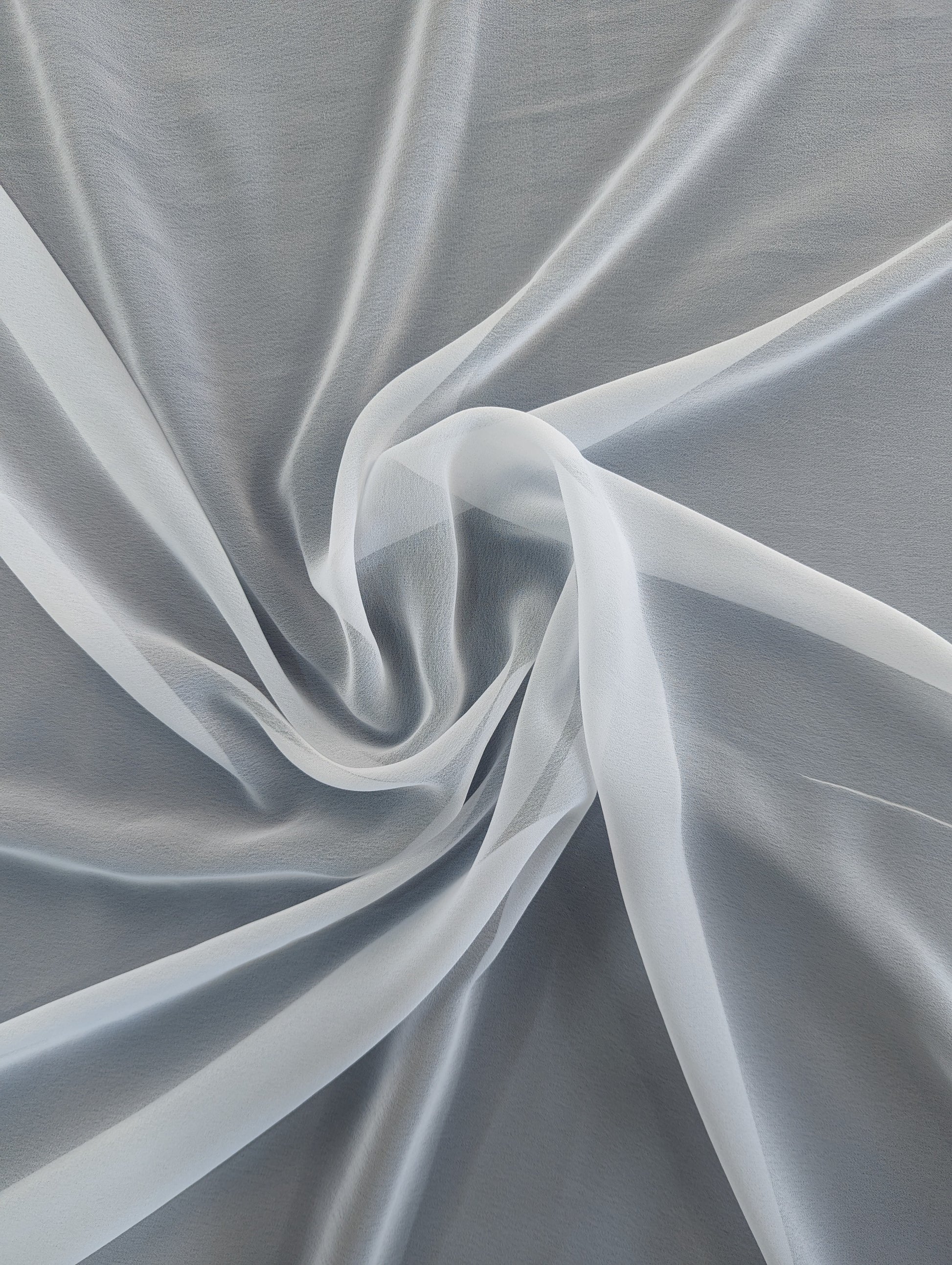 Delicate, elegant, and effortlessly stylish — this sheer, lightweight plain-weave chiffon fabric features a subtly textured crepe surface that adds just the right touch of sophistication. Its feather-light feel and semi-transparent quality make it a dream for creating floaty, ethereal garments and accents.